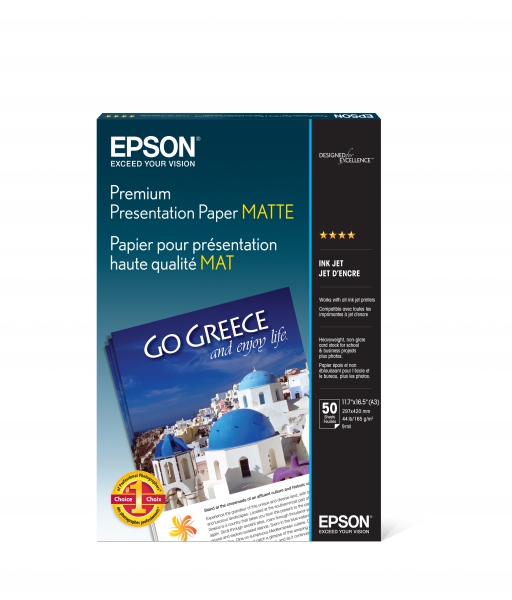 Epson Premium Presentation Matte Inkjet Paper, formerly known as Epson Matte Paper Heavyweight, is engineered to give you amazing, photo-quality images. This heavyweight, non-glare, inkjet paper is good for school, business and photo applications. This paper is ideal for brochures and flyers.The special coatings on the paper allow for high resolution printing and prevent bleeding and over-saturation for accurate, sharper and more vivid results.