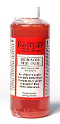 The classic indicator stop bath of acetic acid and bromocresol indicator. Turns color when stop bath is exhausted. Packaged in concentrate, diluted 1:64 for working strength.