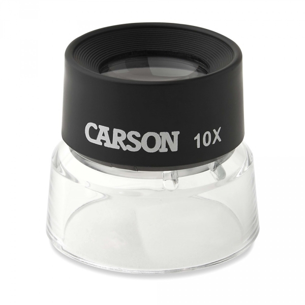 The Carson LumiLoupe™ LL-10 10X power stand magnifier that makes the ordinary extraordinary. This magnifier reveals details you’ve never seen before in things you look at every day. Pre-focused dual lenses allow examination of objects close-up, while a transparent acrylic base permits ambient light to illuminate the subject for bright, clear viewing.
