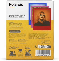 This twist on the classic Polaroid film that gives you 8 instant photographs in the original, iconic Polaroid square format, but finished in a vibrant block color frame.